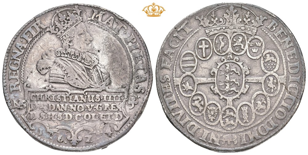 3 speciedaler 1624. København. Oppgravert på advers, små riper / tooled on the obverse, minor scratches