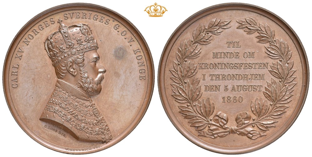 Carl XV. Kroningensmedaljen 1860. Kullrich. Bronse 42 mm; 39,26 g