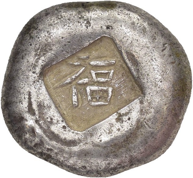 1/4 tael, Sycee ingot (7.99 g). 19th century. Some light corrosion. Lightly toned