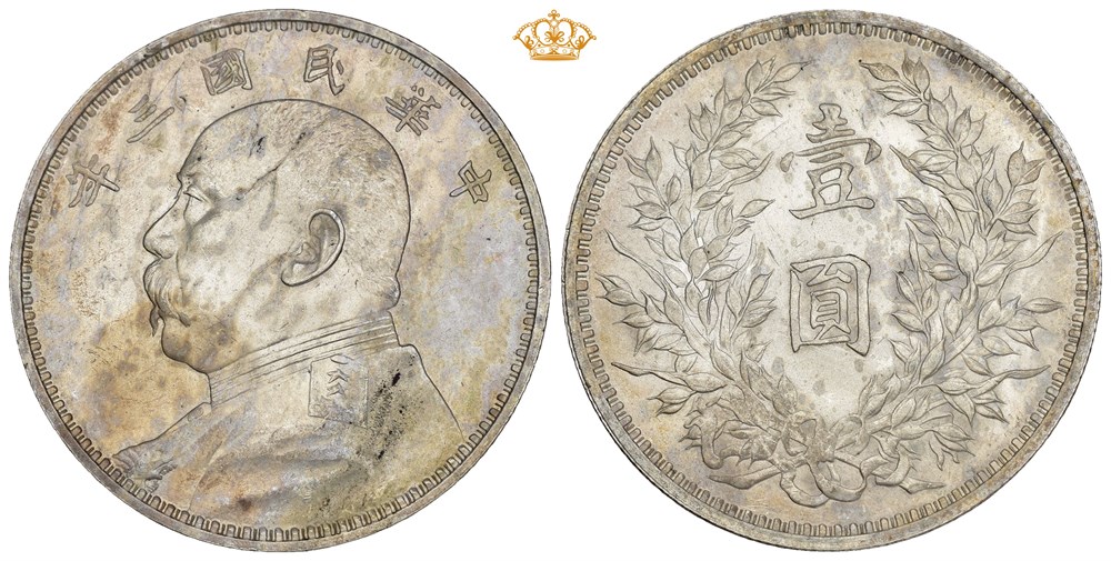 Yuan Shih-kai, Dollar n.d. year 3 (1914). Mottled toning on obverse