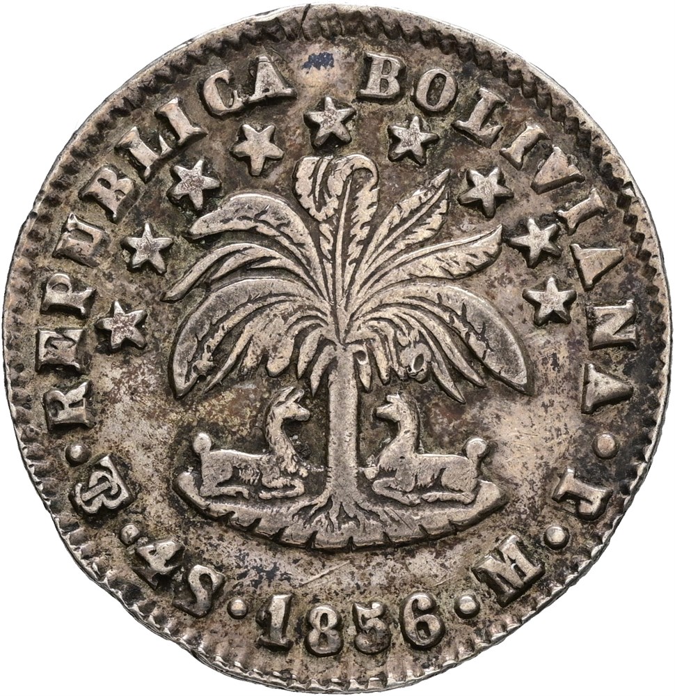 4 soles 1856 PTS MJ (13.44 g). Potosi mint