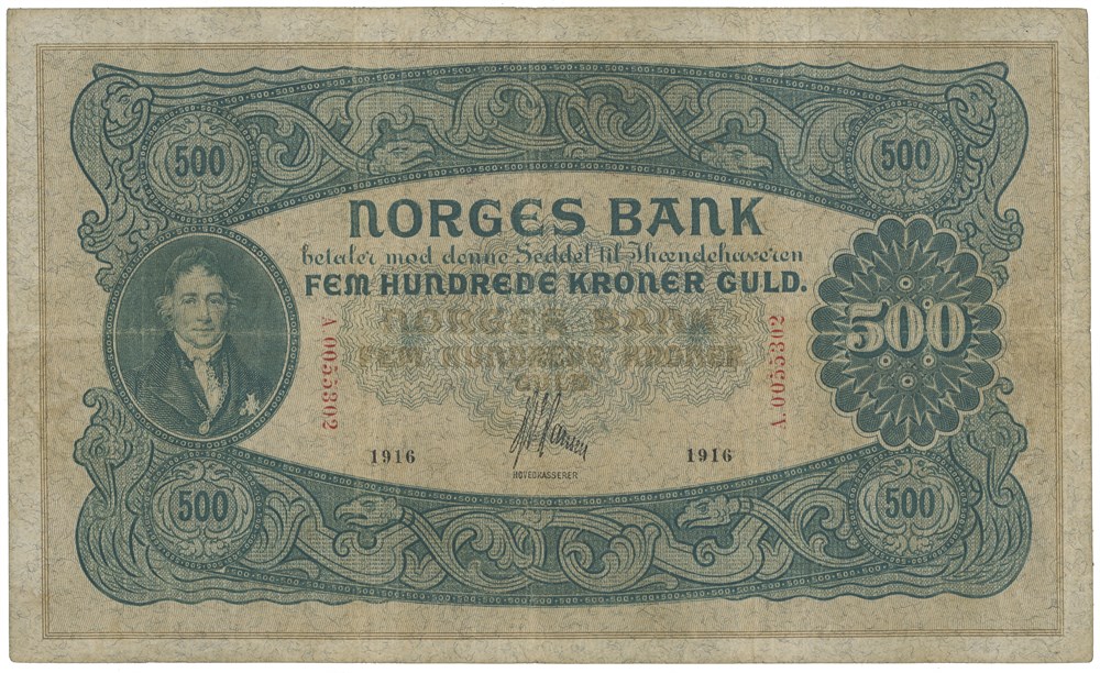 - 500 kroner 1916. A.0055302. Meget sjelden/very rare. (14703514)