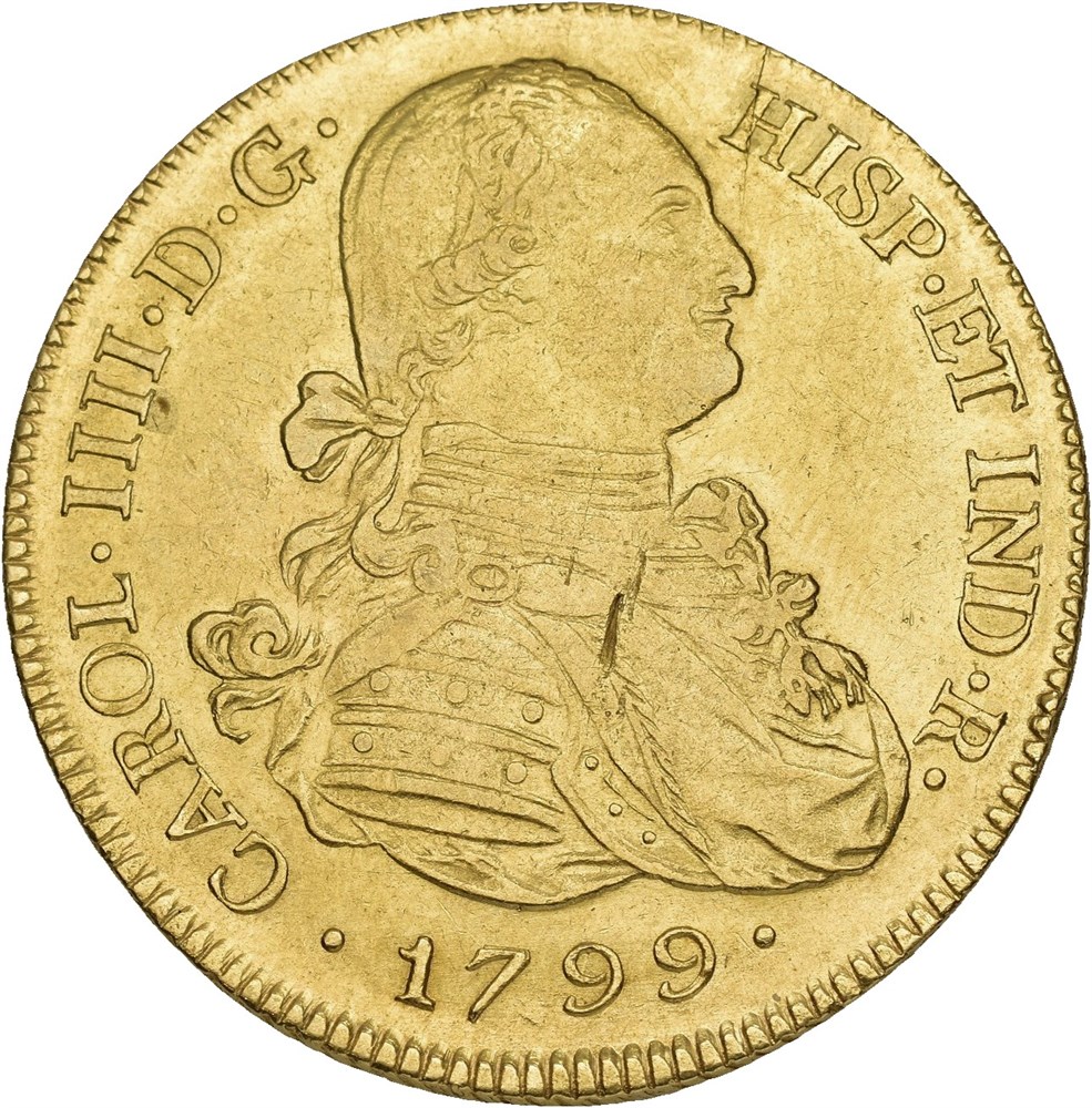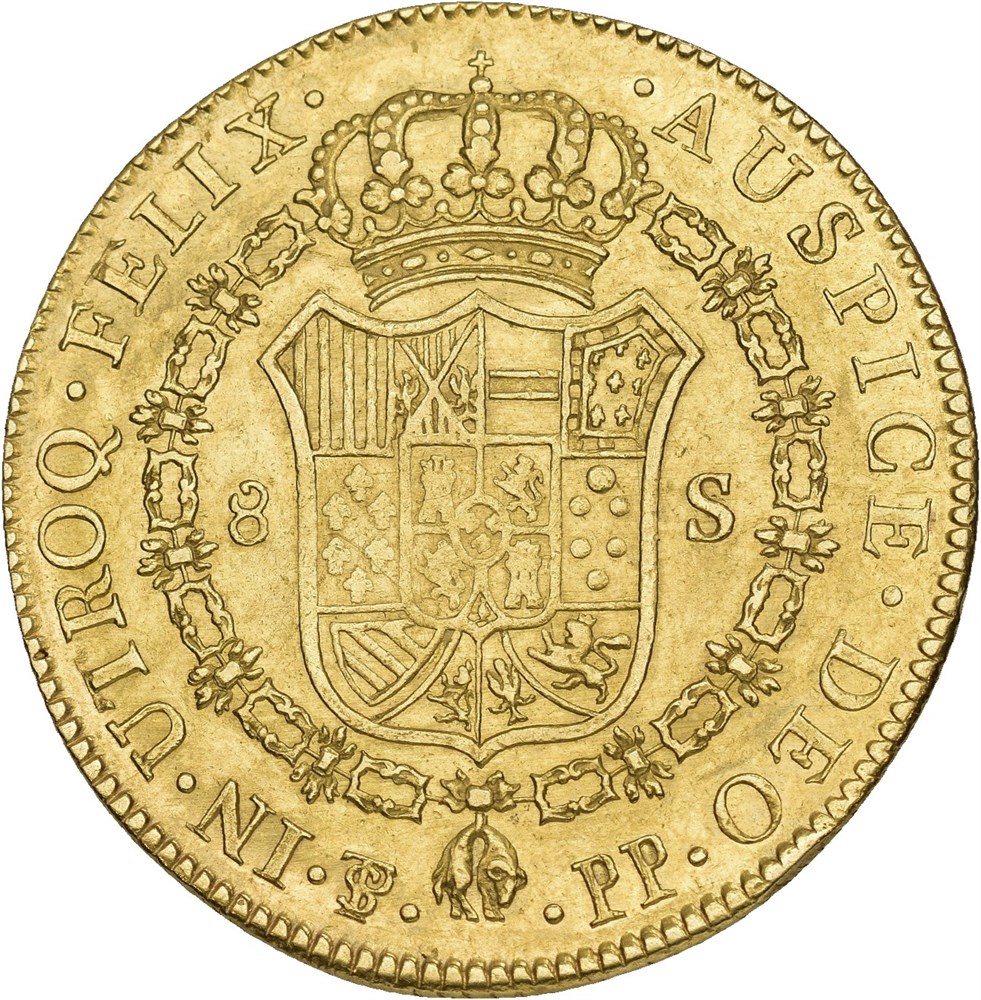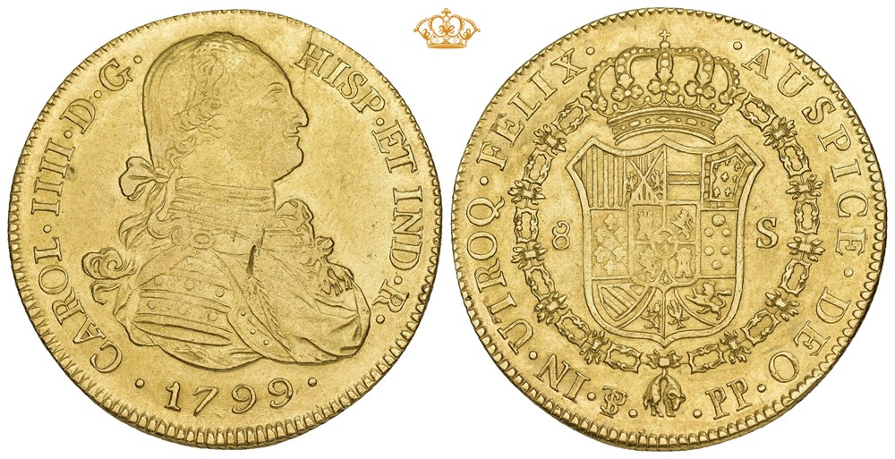 8 escudos 1799 PTS PP (26.96 g). Potosi mint