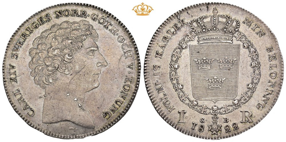 Riksdaler 1822. Stockholm. Små riper og små blankettfeil / tiny scratches and minor flan flaws