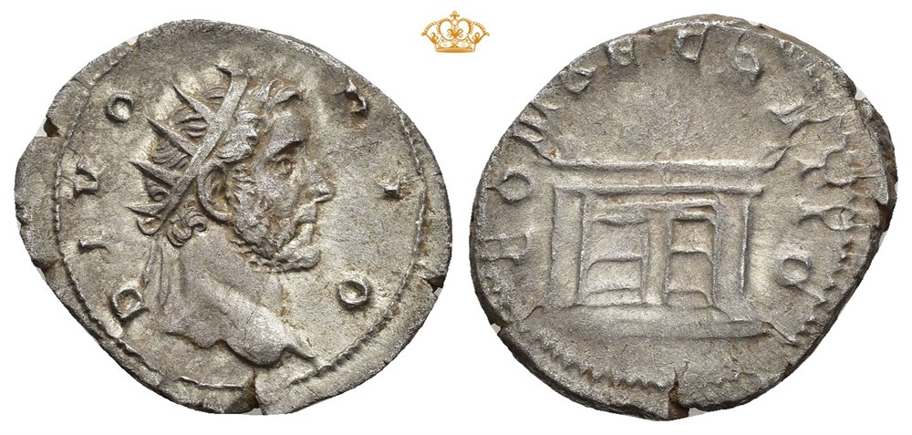 Trajan Decius, AD 249-251. AR antoninianus (24.0 mm, 3.18 g). Commemorative issue for Divus Antoninus Pius (died AD 161). Rome mint, struck AD 151. Radiate head of A. Pius right / Lighted altar. Minor porosity and reverse struck with worn dies. Steel-grey toning