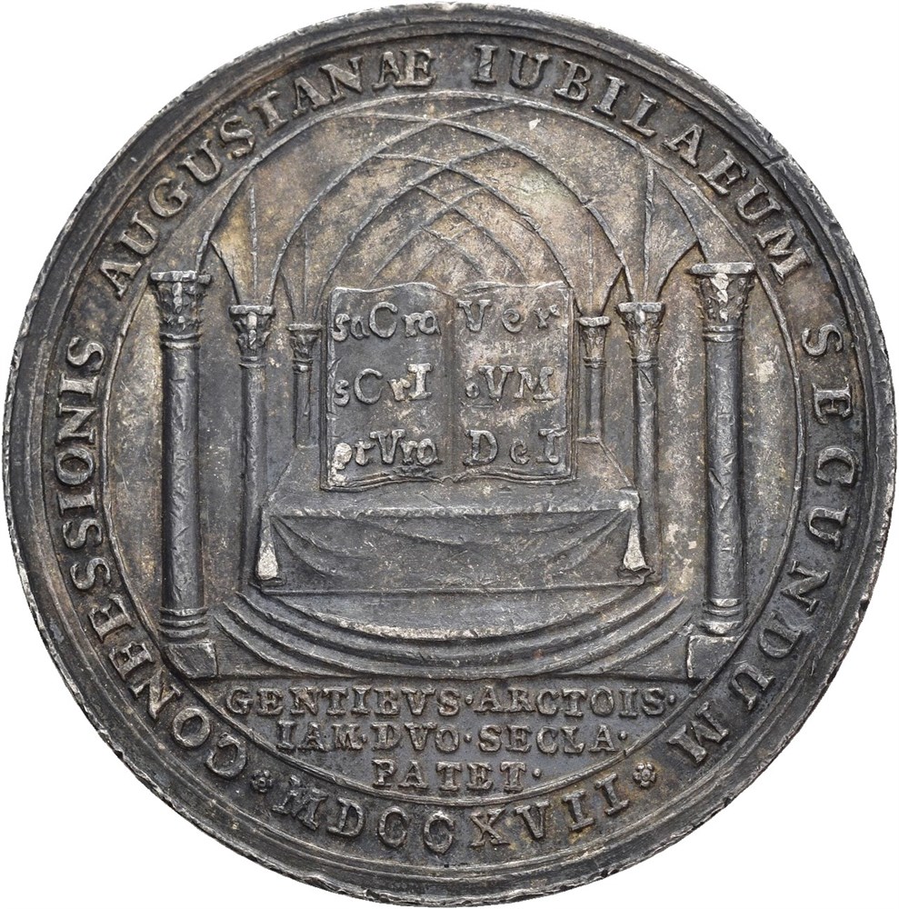 Reformationsfesten 1717. Berg. (Sølv; 43 mm; 32,25 g). Små merker i feltene /small marks in fields