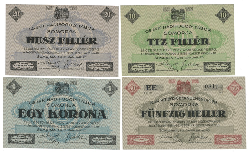 Lot 6 pcs. 10, 20 and 50 heller, 1, 2 and 5 kronen, Somorja 15.1.1916.