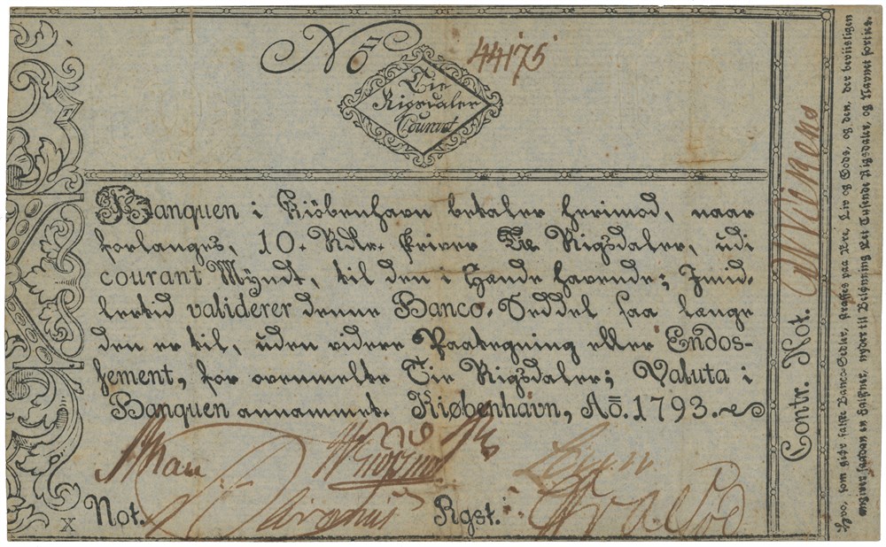 - 10 rigsdaler courant 1793. No. 44175. (14888366)