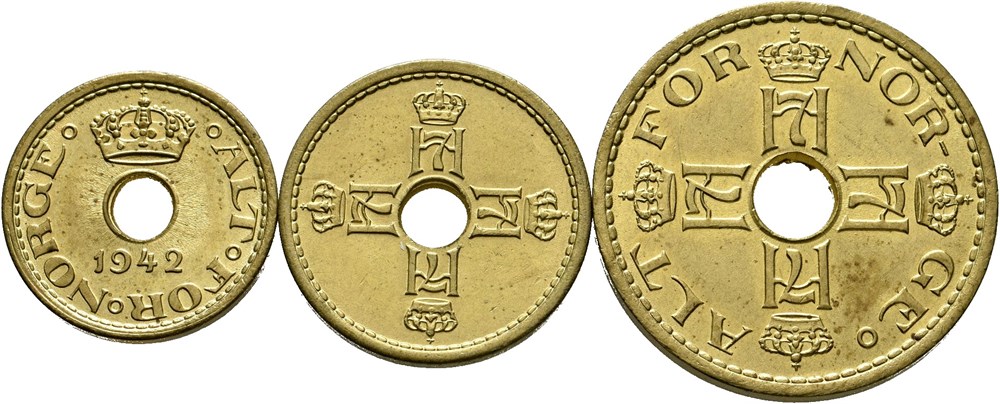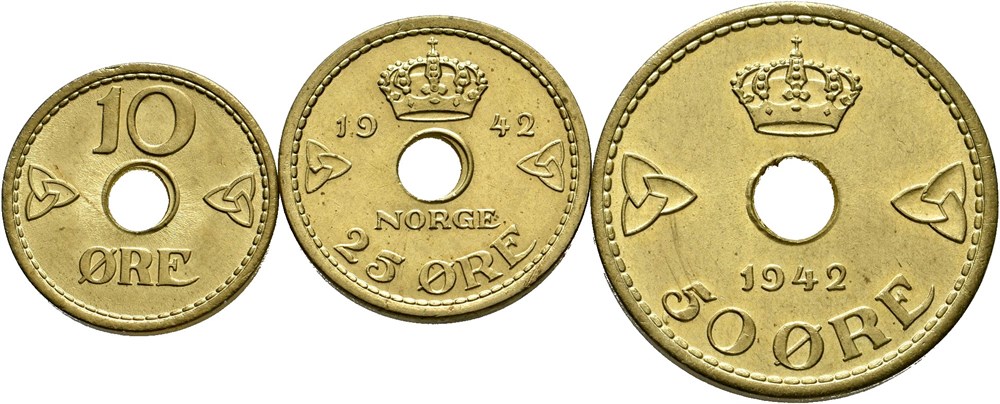 Londonsett 1942 med 10 øre, 25 øre og 50 øre