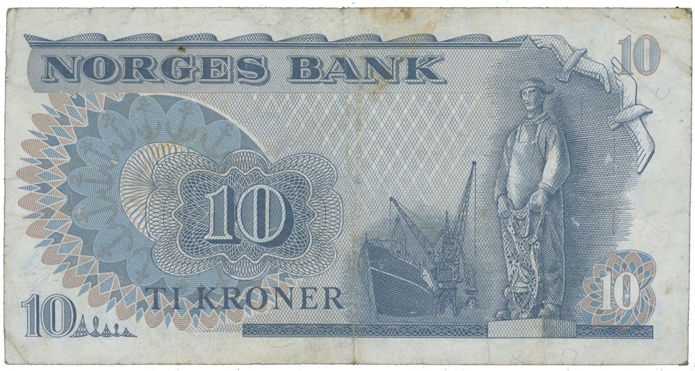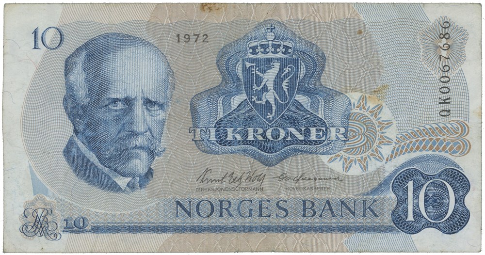 10 kroner 1972 QK Erstatningsseddel, flekker