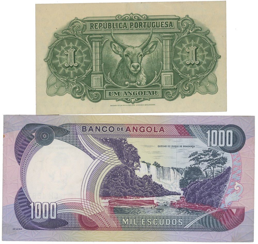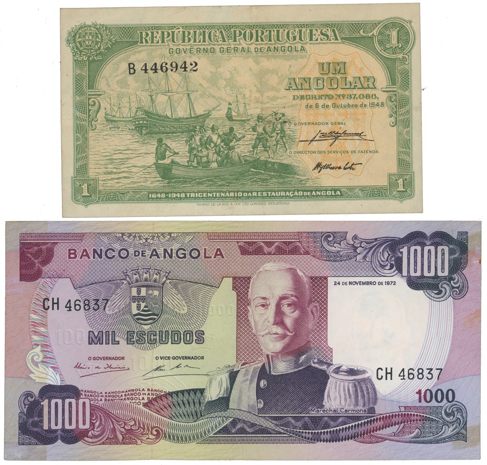 Lot 2 pcs. 1 angolar 1948 and 1000 escudos 1972.