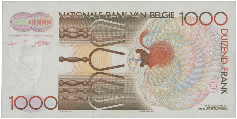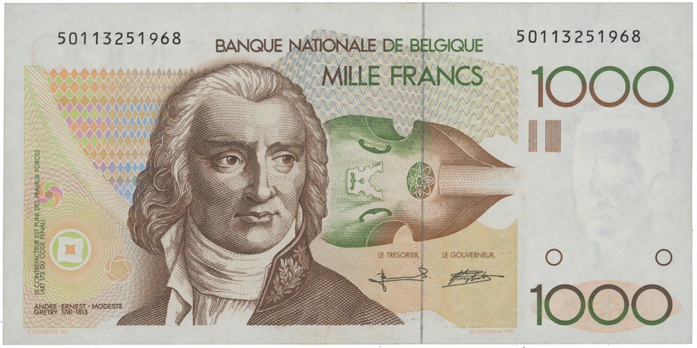 1000 francs ND (1992-96). No. 50113251968. Signed Serge Bertholomé/Alfons Verplaetse.