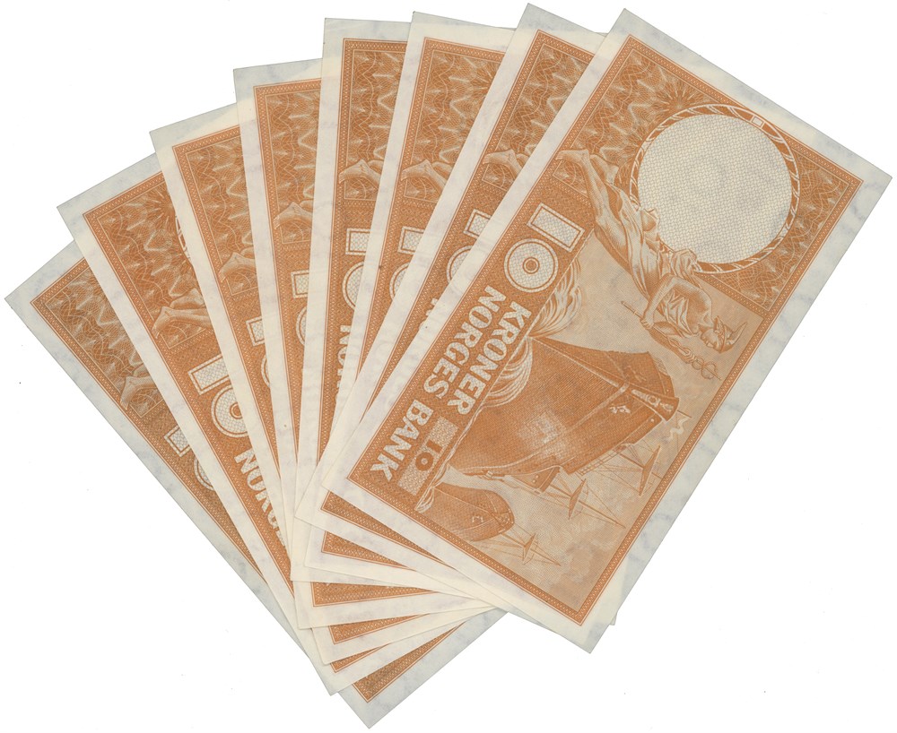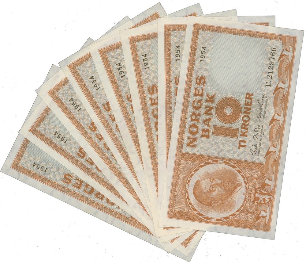 - Lott 8 stk. 10 kroner 1954 E. (15000659)
