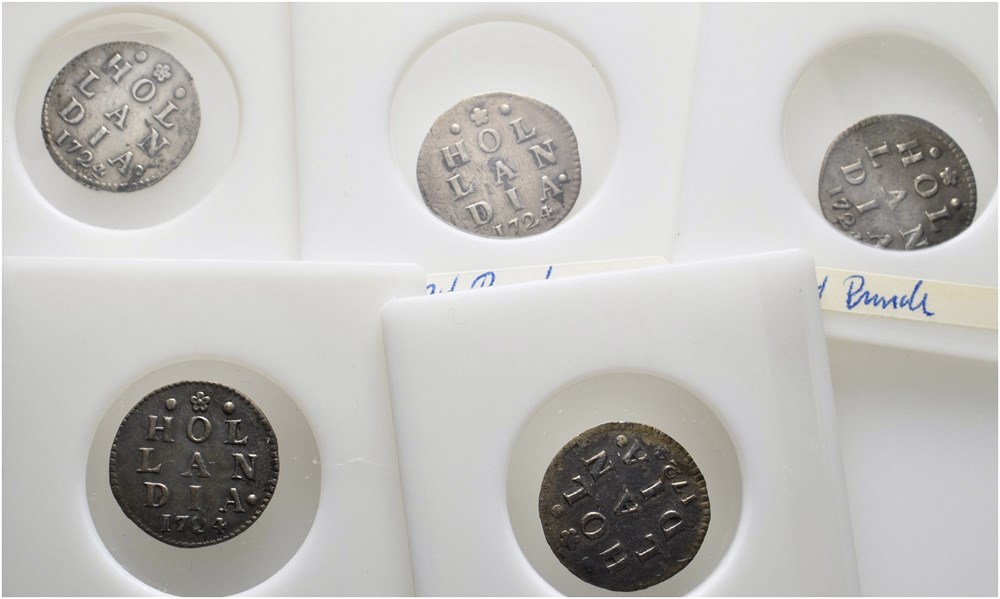 Holland, lot 5 stk. 2 stuiver 1724 (Ex. Rundefunnet)