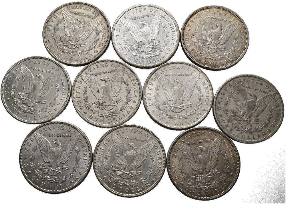 - Lot 10 stk. 1 dollar Morgan type; 1880, 1881 S, 1884 S, 1886 O, 1888, 1889, 1890, 1896 (2) og 1897 O (15013291)