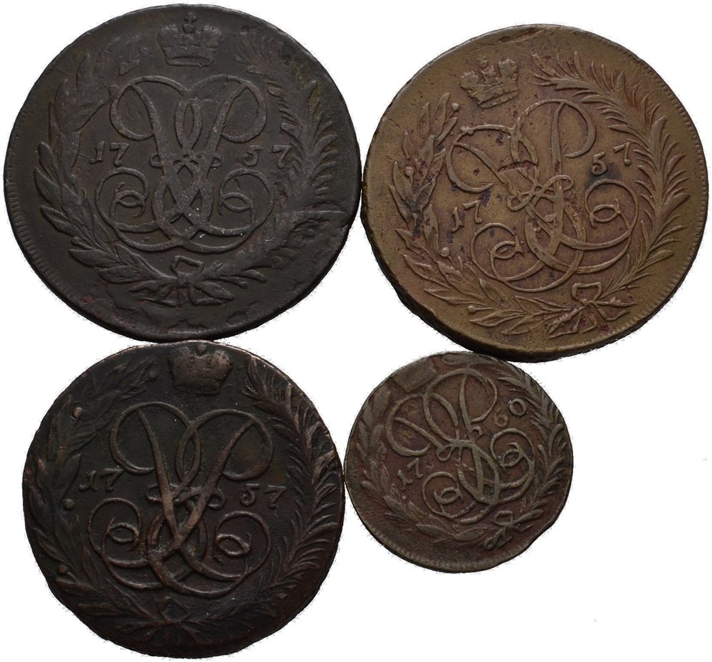 Elizabeth, lot 4 stk. 2 kopek 1757 (3) og denga 1760