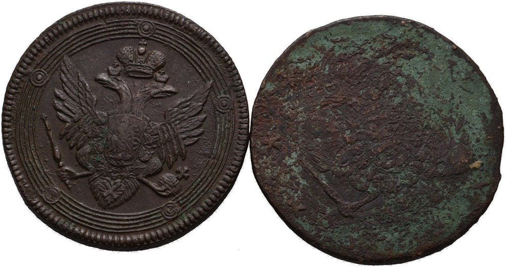 - Lot 2 stk. Peter III, 10 kopek 1762 og Alexander I, 5 kopek 1804 EM (15014011)