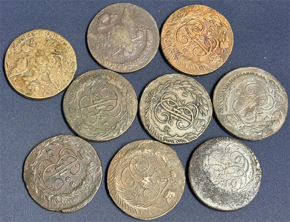 - Catharina II, lot 9 stk. 5 kopek MM (Moskva), 1763 (3), 1764, 1765, 1766 (2), 1768 og 1788 (15014443)