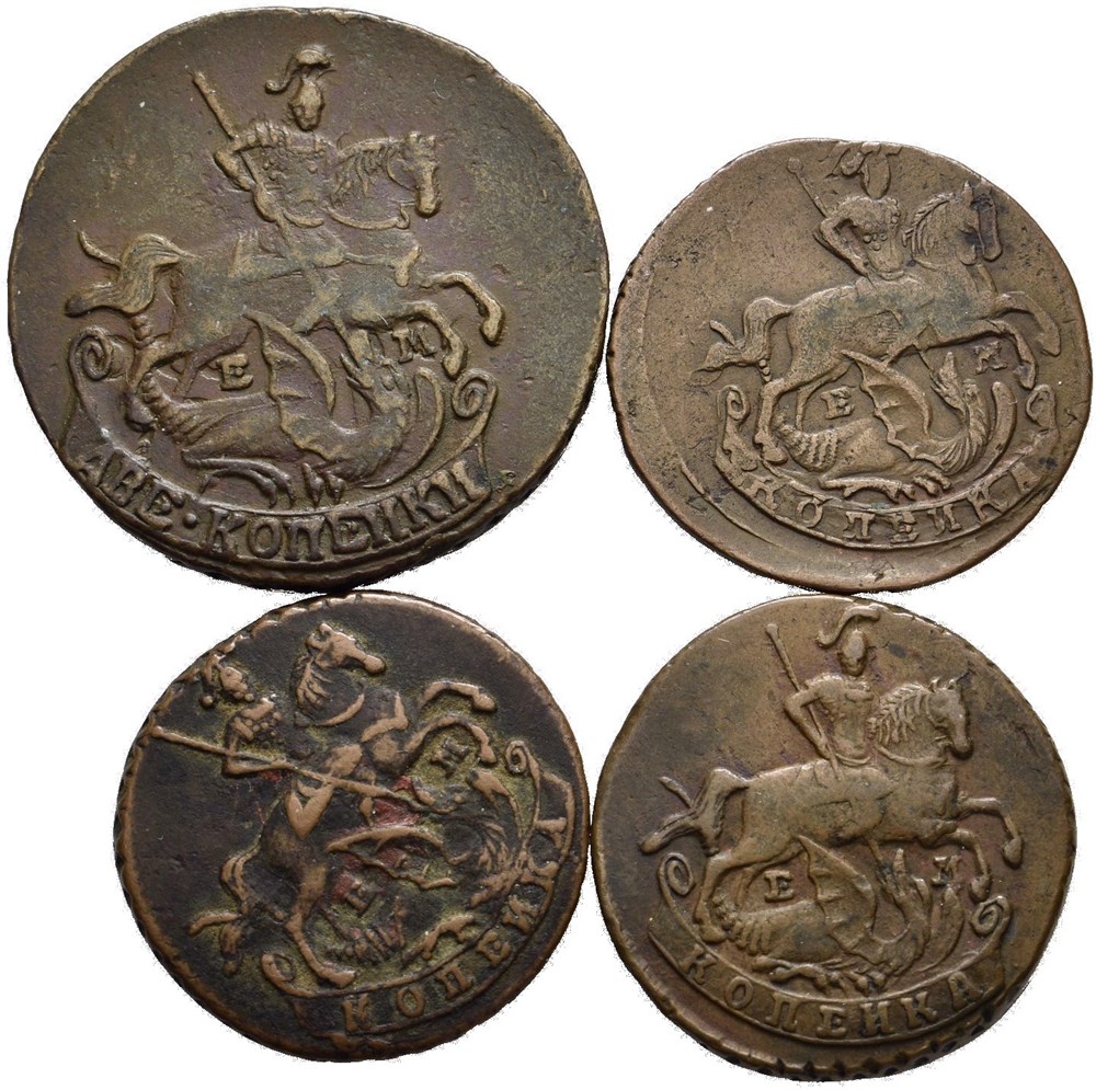 Catharina II, lot 4 stk. 2 kopek 1790 EM, kopek 1794 EM og 1795 EM (2)