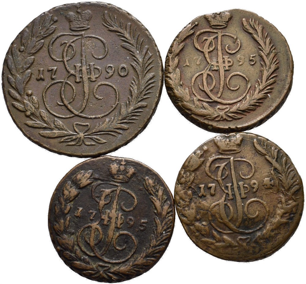 - Catharina II, lot 4 stk. 2 kopek 1790 EM, kopek 1794 EM og 1795 EM (2) (15014515)