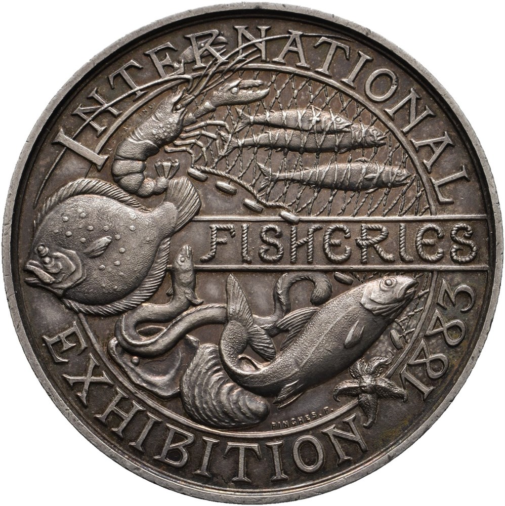 Victoria 1837-1901. AR Medal struck for the International Fisheries Exhibition 1883, by L. C. Wyon and J. Pinches, 46,78 grams. Obverse lightly cleaned.