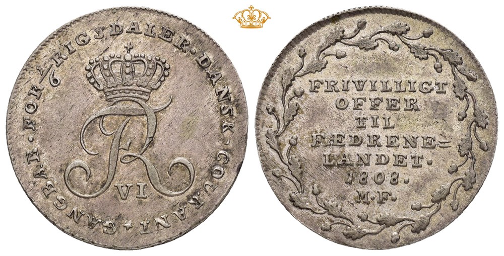 Offermark 1808, flott patina og myntglans.
