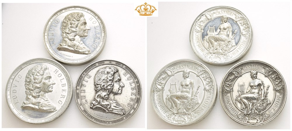 - Ludvig Holberg (1684-1754). Lott 3 medaljer. Tinn. 50 mm (15142079)