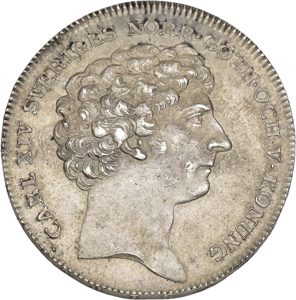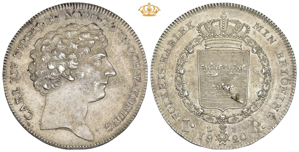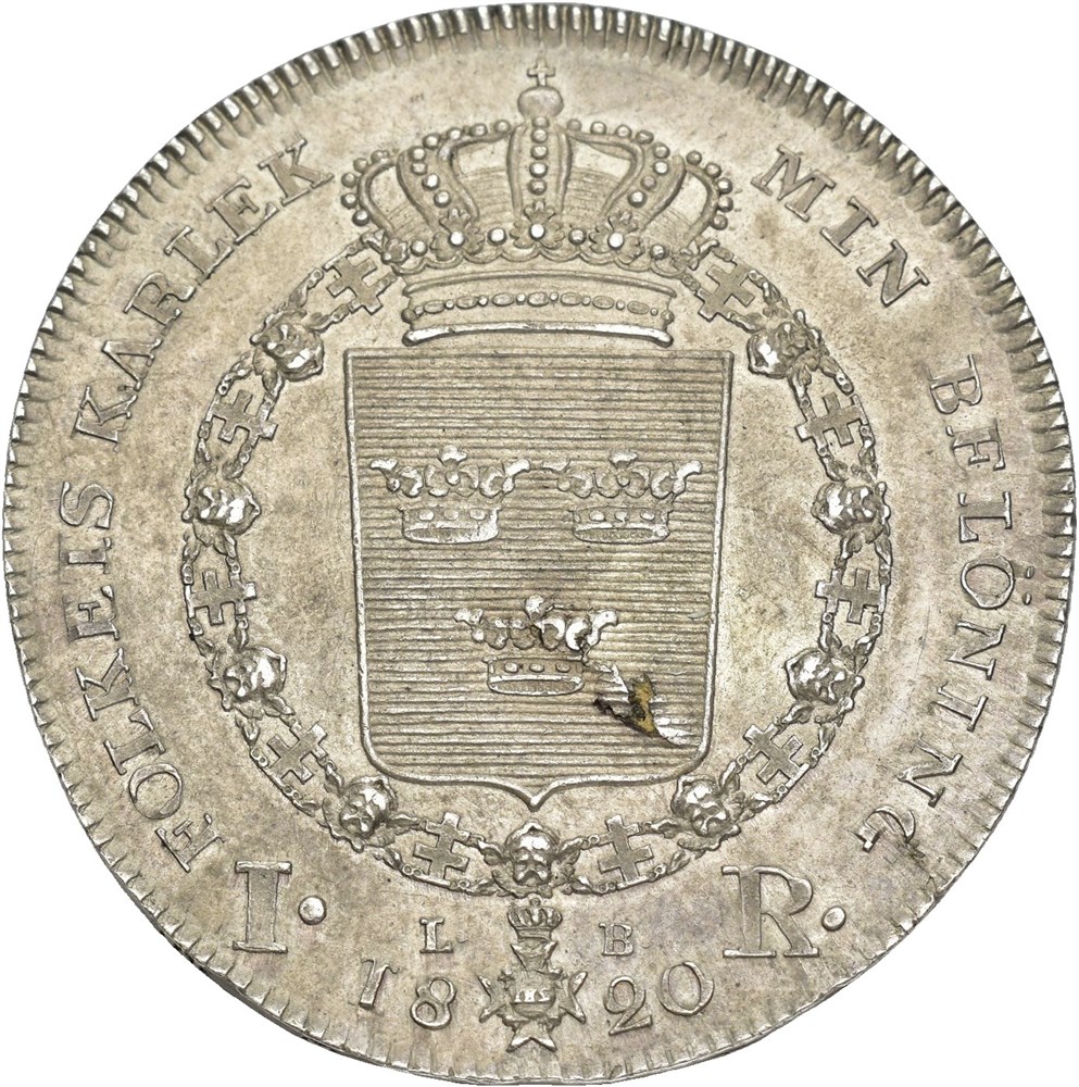 Riksdaler 1820, Stockholm. 29,30 g. Liten blankettfeil revers.