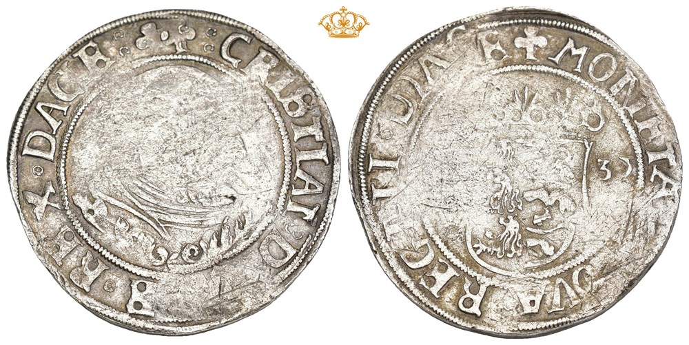 2 mark 1535, Roskilde. 12.22 g. Svakt preget, små riper.