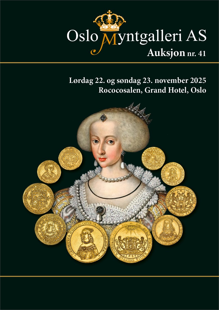 1. The following terms and conditions apply to bidders in all auctions held by Oslo Myntgalleri AS. By making a bid, the bidder agrees to our terms and conditions and accepts to be bound by them. The auction is open to the public and all participation is voluntary. Unless otherwise stated, there will be more than one consignor. Lots marked with an x behind the lot number are consigned by Oslo Myntgalleri AS or by the main shareholders of Oslo Myntgalleri AS.