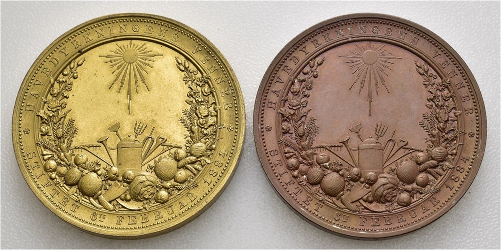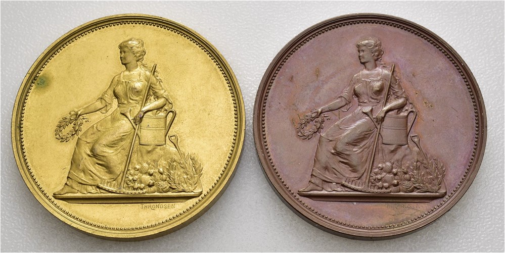 Havedyrkningens venner 1889. Throndsen. Forgylt bronse (flekk på advers/spot on obverse) og bronse 45 mm.