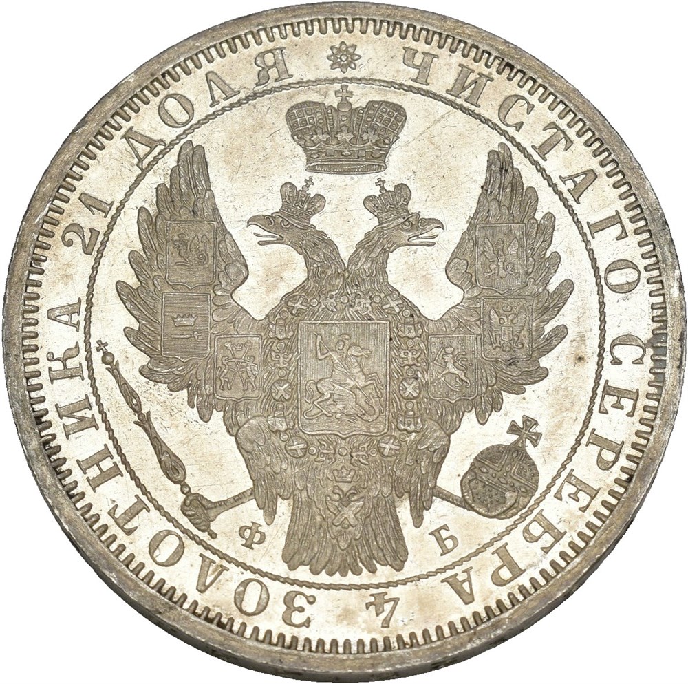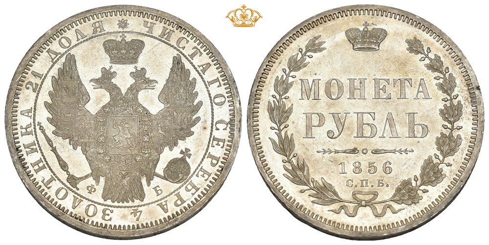 Rouble 1856, St. Petersburg. 20.67 g. Beautiful specimen with prooflike character.