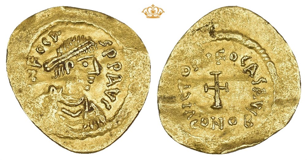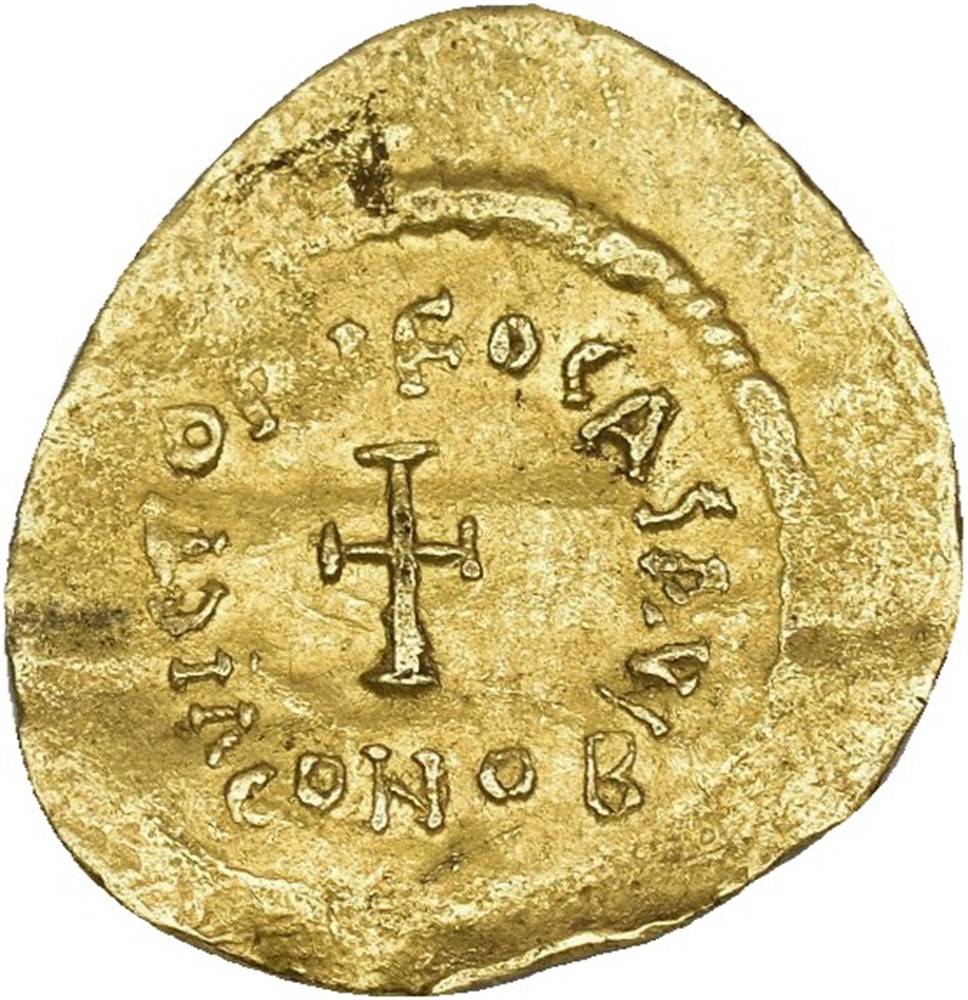 Phocas 602-610 AD. AV Tremissis 603-607 AD (17 mm; 1.50 g). Constantinople mint, struck 602-607 AD. Obverse: d N FOCAS P P AVG, Diademed, draped and cuirassed bust of Phocas right. Reverse: VICTORI FOCAS AVG - CONOB, Cross potent. A bit wavy and uneven flan.