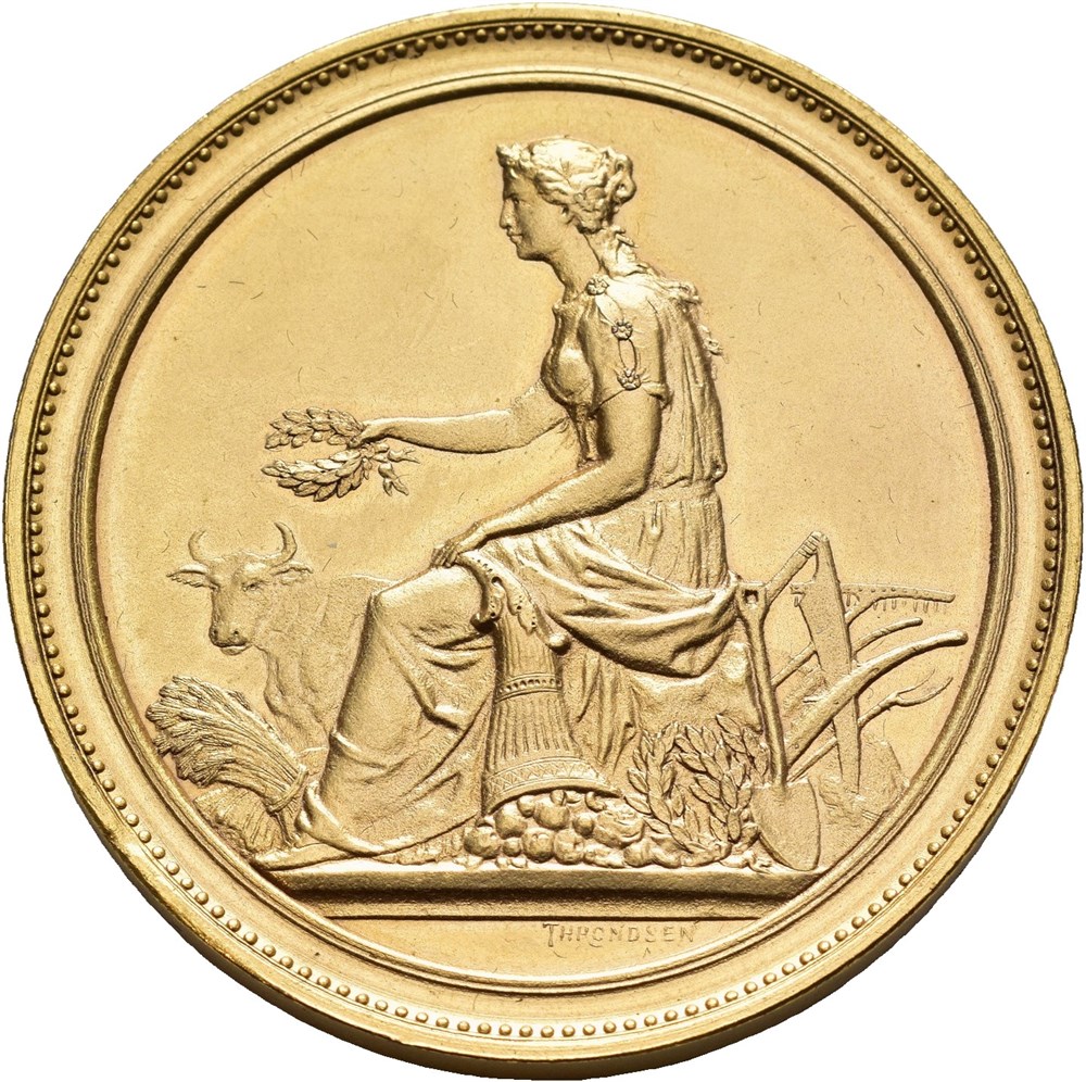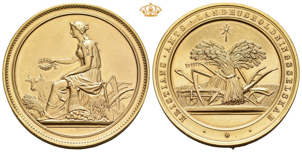 Kristians Amts Landhusholdningsselskab 1890. Throndsen. Forgylt bronse 43 mm, 28,87 g. I originalt etui
