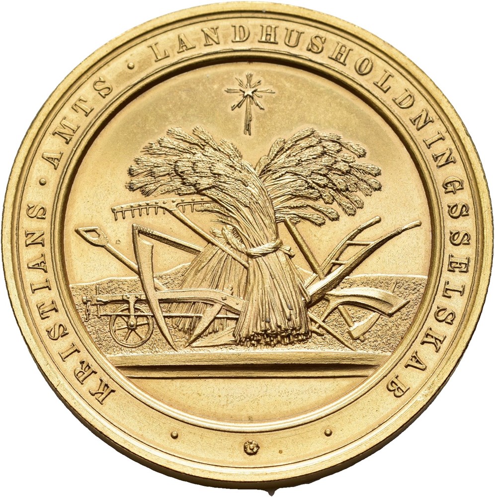 - Kristians Amts Landhusholdningsselskab 1890. Forgylt bronse 43 mm (15149328)