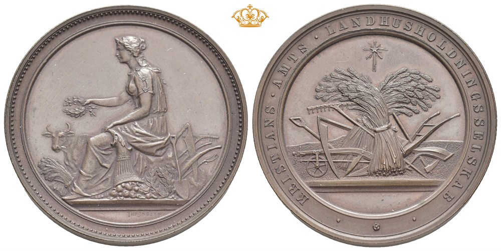 Kristians Amts Landhusholdningsselskab 1890. Throndsen. Bronse 43 mm, 29,74 g