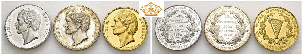 12. The prices in the catalogue are minimum prices and lower bids will not be accepted. A buyer’s premium of 20 % is added to the hammer price of each lot. All coins and banknotes that are or have been legal tender are exempted from VAT in Norway. 25 % VAT is added to the buyer’s premium on medals when picked up in Norway. On medals sold for export, the buyer’s premium is 20 %. Lots that are subjected to VAT is marked with * by the end of the lot number. Domestic shipments are sent with registered mail with tracking at a minimum charge of NOK 200, -. All international shipments will be sent with DHL or Fedex at a minimum price of NOK 690, -. Successful bidders may also to pick up their won lots at our offices in Oslo and Haugesund. Oslo Myntgalleri is not responsible for shipments that are lost due to wrong or insufficient address information provided by the buyer.