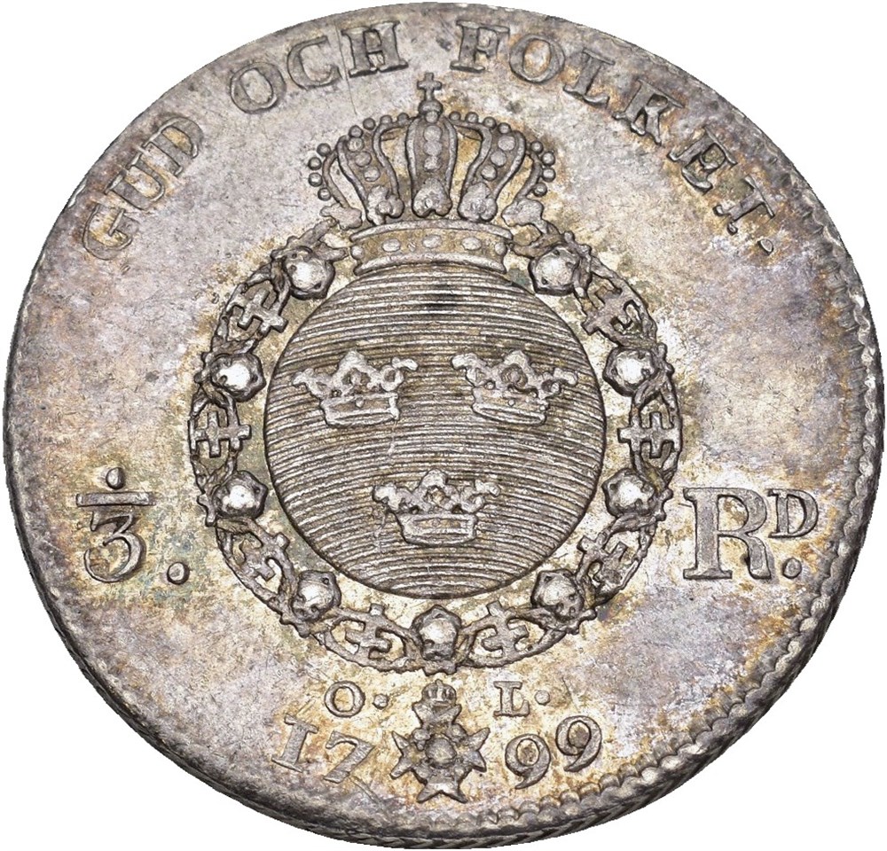 1/3 Riksdaler 1799, Stockholm. 9,76 g. Flott patina.