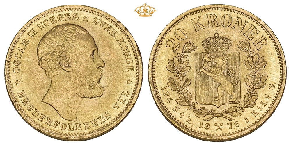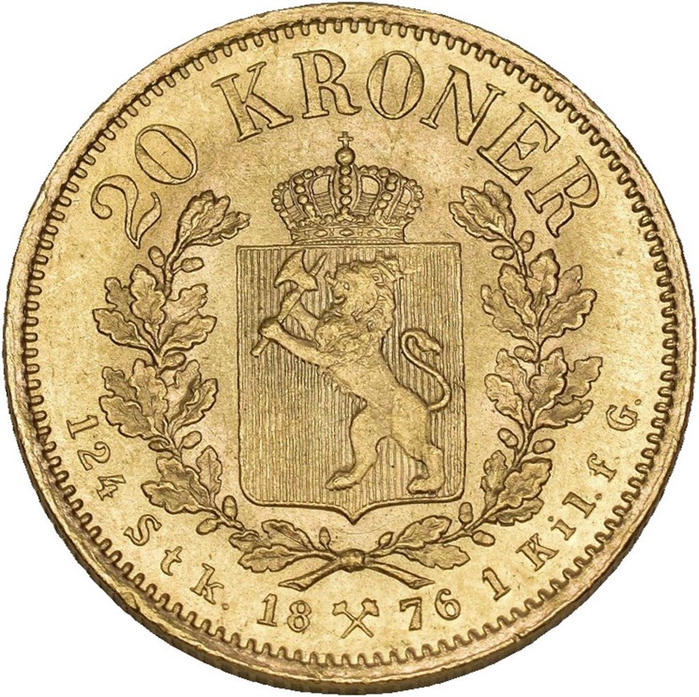 20 kroner 1876. Mindre kanthakk/minor edge nicks.