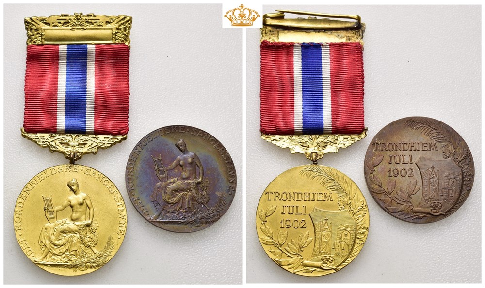 Den Nordenfjeldske Sangerstevne. Throndsen. Bronse 31 mm; 9,13 g og forgylt bronse med hempe, agraff og bånd 31 mm