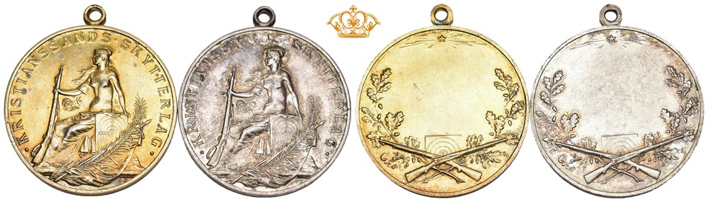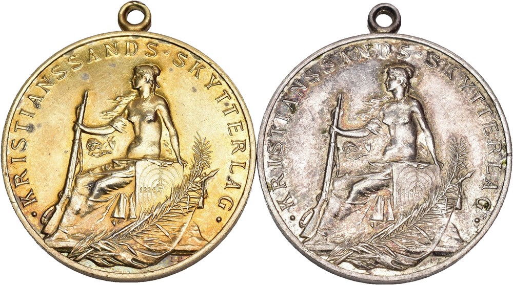 Kristiansands Skytterlag. Throndsen. Sølv og forgylt blanding av kobber og sølv m/h 31 mm