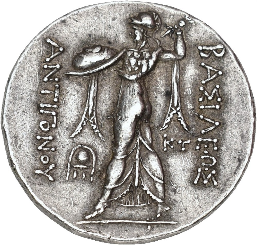 KINGS of MACEDON. Antigonos II Gonatas 277/6-239 BC. AR Tetradrachm (31 mm; 17.16 g). Amphipolis mint. Obverse: Horned head of Pan facing left in the center of a Macedonian shield. Reverse: Athena Alkidemos advancing left, holding shield with left hand and with thunderbolt in right. Attractively toned.