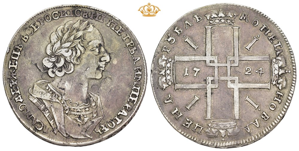 Rouble 1724, Moscow. 27.3 g. Minor planchet flaw.