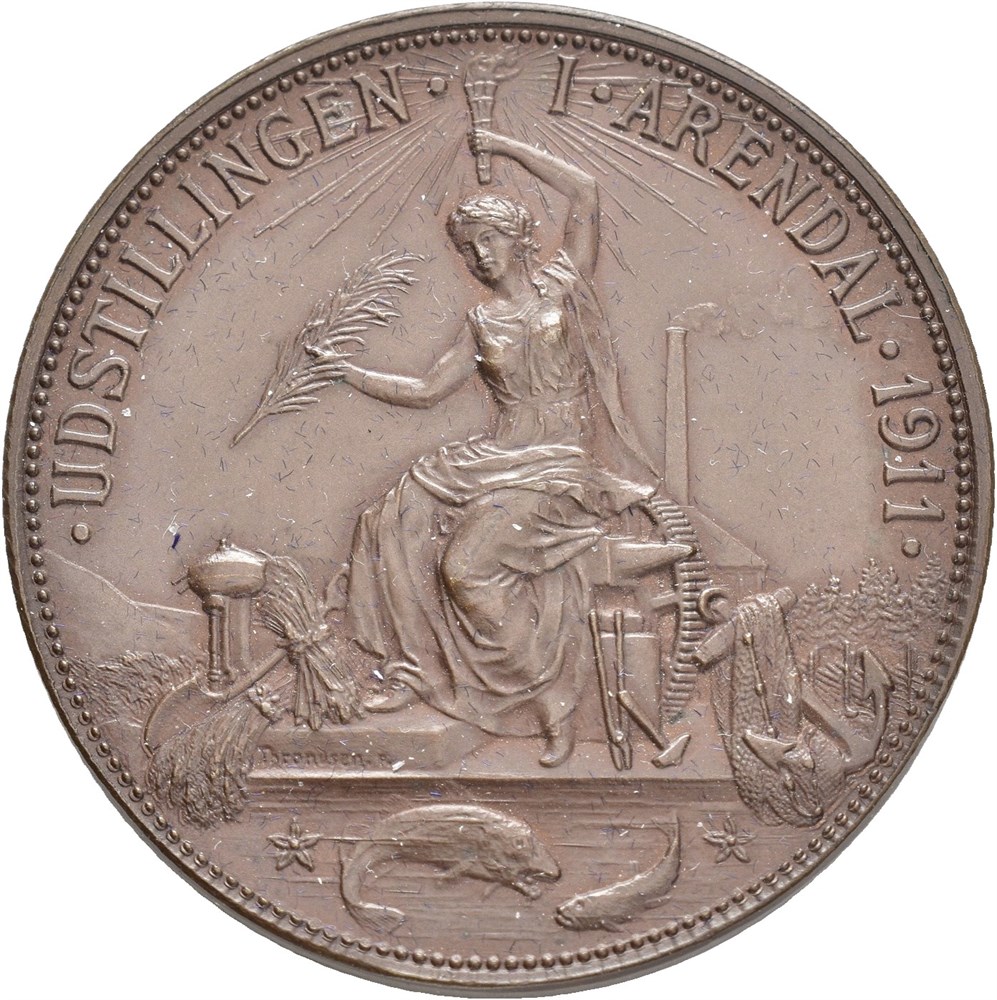 Udstillingen i Arendal 1911. Throndsen. Bronse 43 mm; 29,76 g