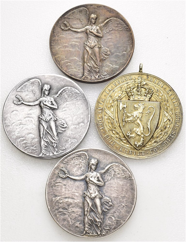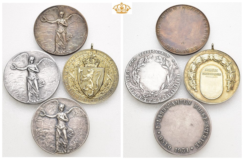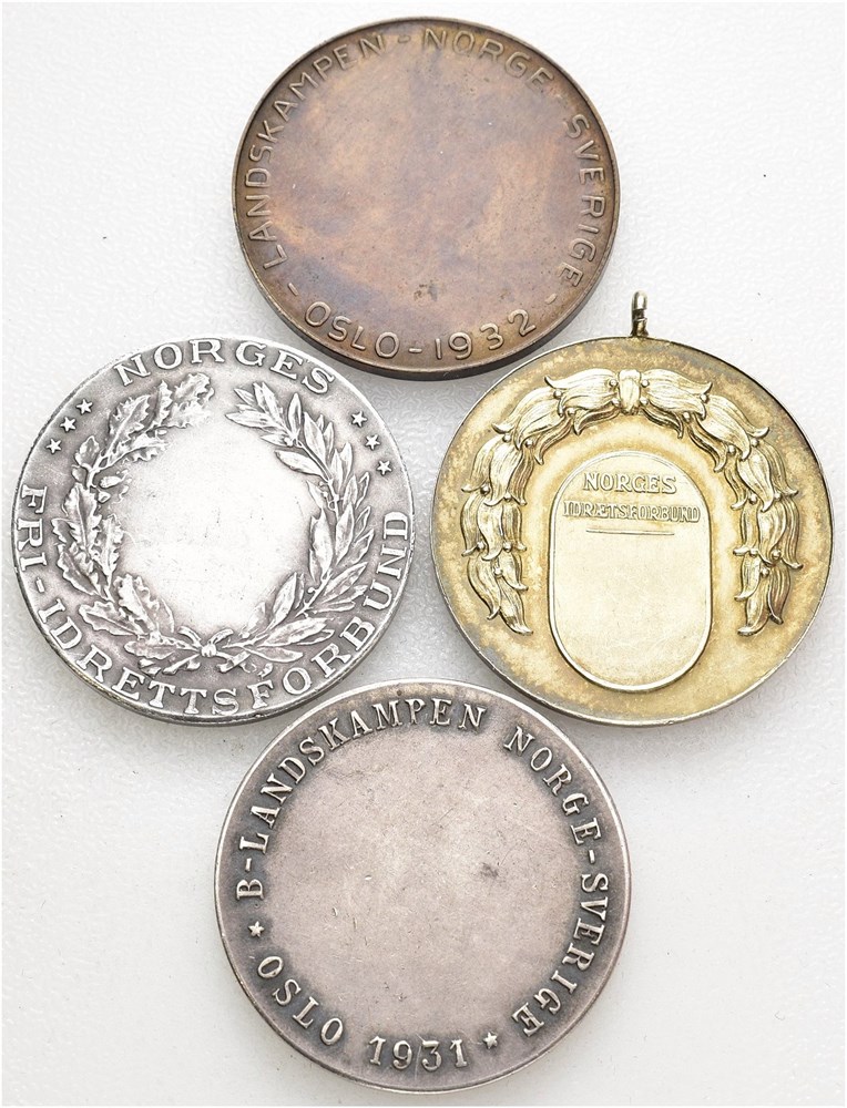 Norges Idrettsforbund. Lott 4 medaljer: Sølv (2), bronse og forgylt sølv. 31 mm