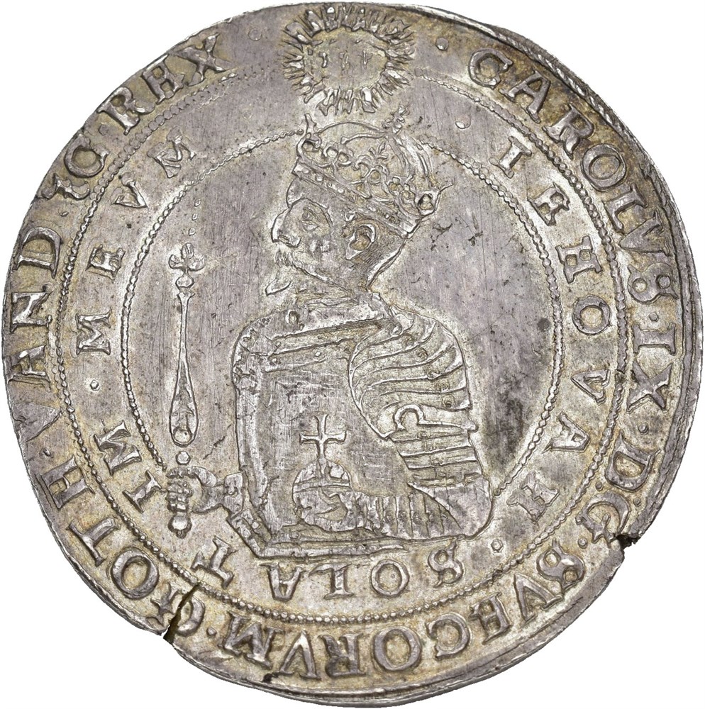 4 mark 1608, Stockholm. 18,92 g. Sjelden variant med SOLAT-IM. Blankettfeil.