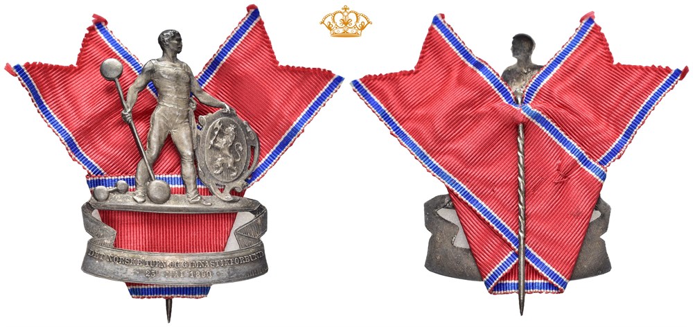 Det Norske Turn- og Gymnastikkforbund. Throndsen. Ensidig merke med nål og bånd. Sølv 36x51 mm