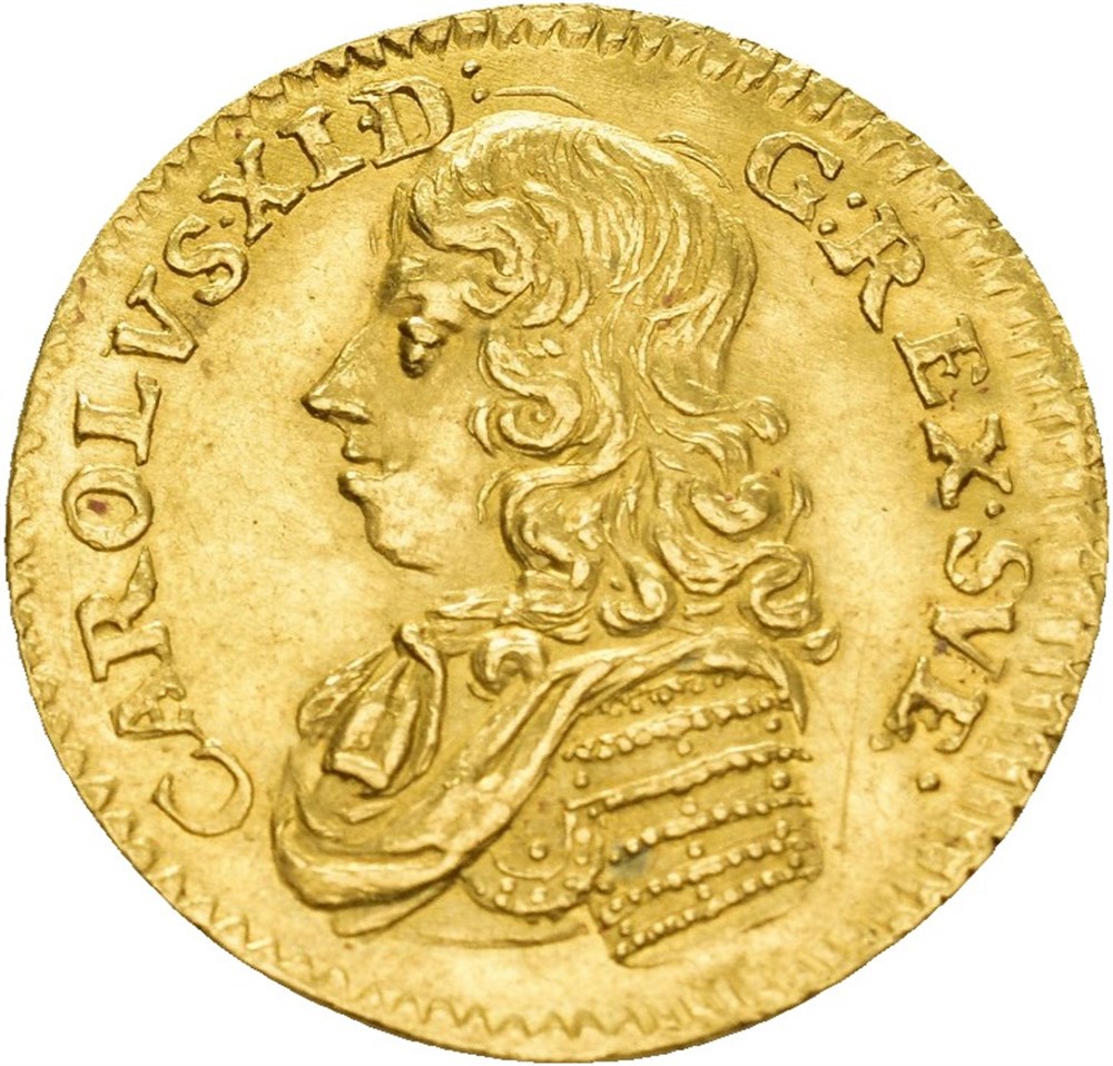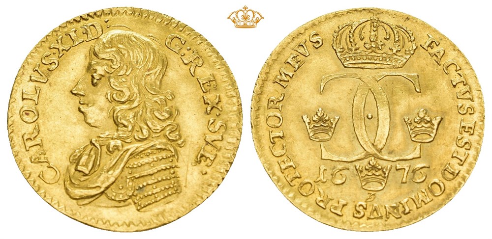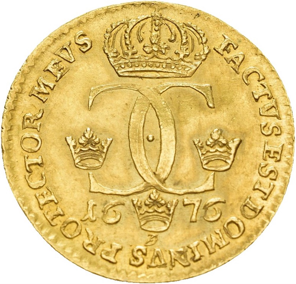 Dukat 1676, Stockholm. 3,47 g. R. Ubetydelig buklet.