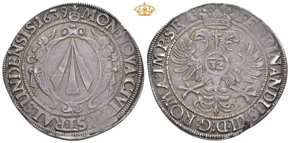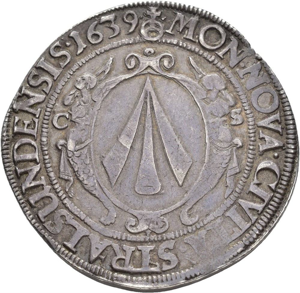 Taler 1639, Stralsund. 28,64 g. RR. Blankettfeil.