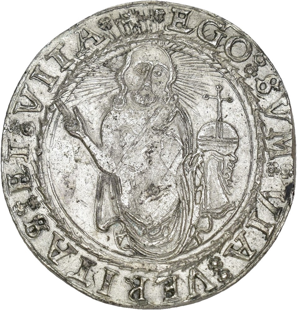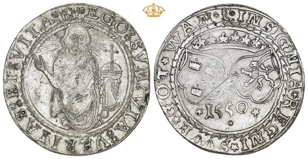 1/2 daler 1550, Svartsjö. 14,46 g. Kanthakk, små riper. RRR.